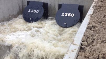 View 1350mm Torrent Flood Gates in Pump Station Outlet |