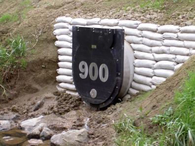 This patented flood gate is fitted to concrete pipe using a unique band to secure in place.